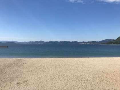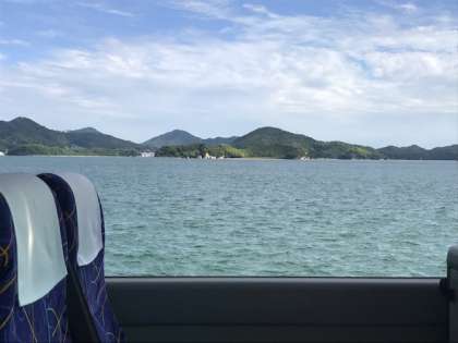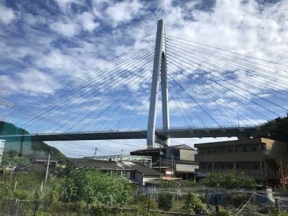 瀬戸内海、しまなみ海道の大きな橋を車窓から眺めながらバスでサンセットビーチに移動しました。