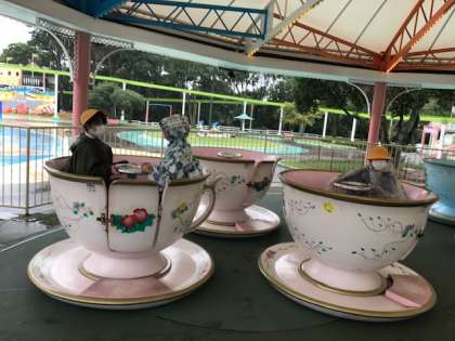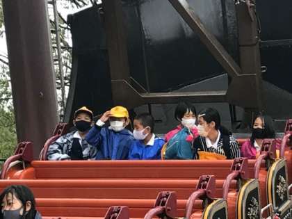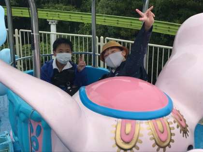 みろくの里でいろいろなアトラクションに乗って楽しんでいます。