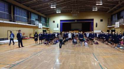 6年生の子どもたちが予定より30分遅れでしたが、無事に帰校しました。