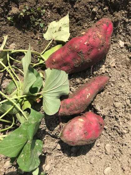 長細い芋や太い芋、丸い芋などさまざまな形の芋があり子どもたちは大喜びでした。