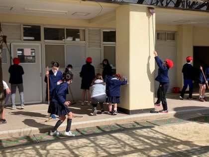 本日の3時間目にすみれ紅白そうじ合戦をおこないました。すみれ紅白そうじ合戦は、他学年の子どもたち同士で清掃活動に取り組むことを通して、掃除の仕方を互いに教え合ったり、学び合ったりして、協力して学校をきれいにしようとすることを目標に行っています。