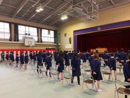 6年生の子どもたちは卒業式の練習に取り組んでいます。卒業証書授与、別れのことば等を練習し、練習を重ねるごとに上達しています。