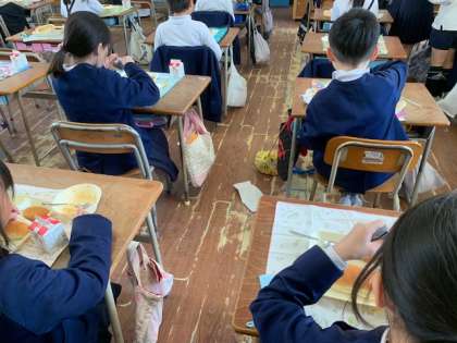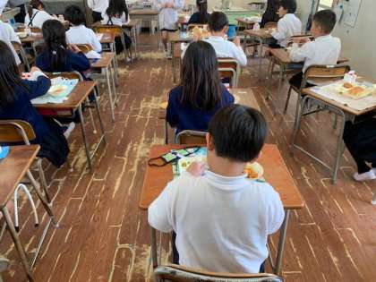 最初の頃は感染防止のためにPTAや保護者の皆様方に準備を手伝っていただきましたが、今では子どもたちで協力して準備や後片付けも静かにスムーズに行うことができるようになりました。