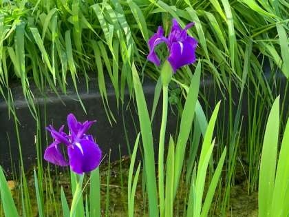 すみれ小学校のビオトープに菖蒲が咲き始めました。菖蒲は、昔からこどもの日(端午の節句)に菖蒲湯として利用されてきた、薬用効果のある多年草です。剣のような尖った葉っぱが特徴です。初夏の到来を感じさせてくれます。