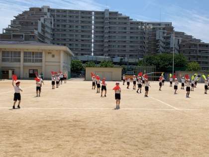 4年生も運動会本番に向けて演技の練習に励んでいます。