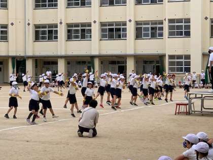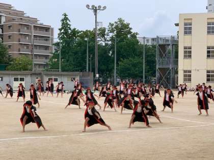 写真は上から、2年「一笑懸命」、5年「南中ソーラン」の様子です。