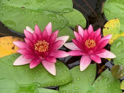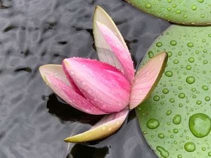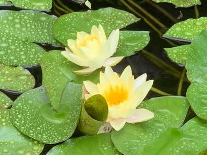 さて、正門ピロティー前にある池には、水蓮の花がきれいに咲いています。赤と黄の色が鮮やかで大変美しいです。