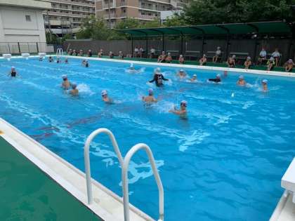 今日の5時間目に3年生が水泳学習に取組みました。例年よりも入水できる時間は短いですが、子どもたちは集中して授業に取り組んでいます。