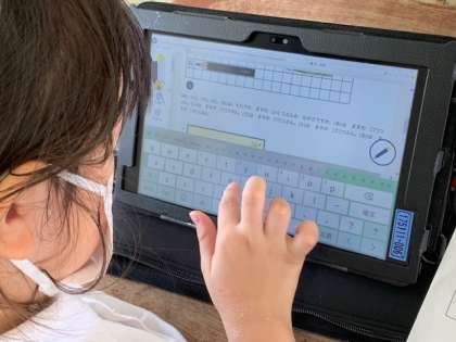 これまで何回もデジタルドリルに触れてきたので、ほとんどの子どもたちがスムーズに使っていました。また、急なトラブルでうまくつながらなかったときは、近くの子が助けに行ってトラブルを解消していました。