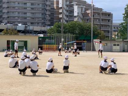 後半では簡単な試合をし、お礼を言ってお別れしましたが、子どもたちはもっと聞きたいことや教えてほしいことがあったようで「先生、もう終わりなん?」と残念そうにしている子がたくさんいました。
