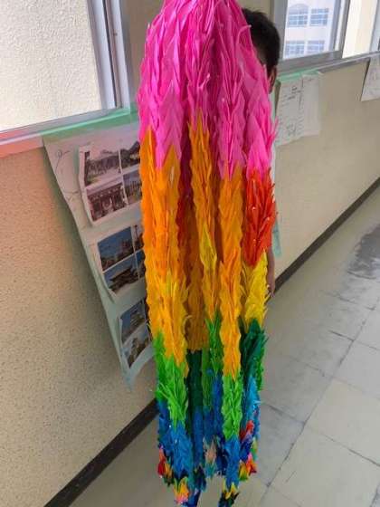 千羽鶴には、「世界が平和でありますように」「友達となかよくします」という願いと決意が込められています。