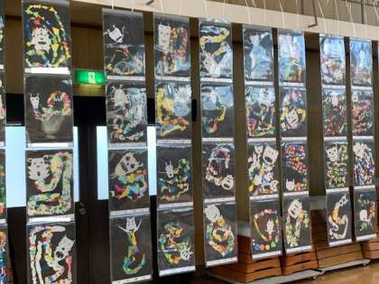 今週の水・金曜日の放課後には親子鑑賞の時間を設定しました。子どもたちが家族の方に、自分の作品の工夫点や作品展の中で見つけたお気に入りの作品について熱心に説明する姿が見られました。また、保護者の方に作品をほめていただき、大変うれしそうでした。