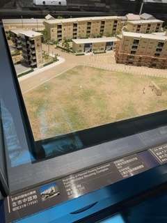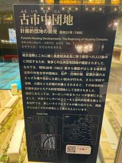 特に興味深かったのは、すみれ小学校の近くにある、昭和31年(1956年)現在の古市中団地が精密なジオラマで再現されていたことです。昭和28年(1953年)から建設がはじまった城東区の古市中団地は、計画的な大阪市営住宅団地でした。水洗トイレやバルコニーが備え付けられるなど、新しいライフスタイルの住宅として注目を浴びました。
