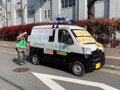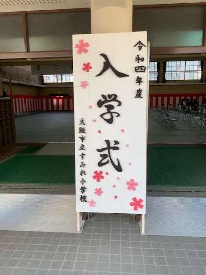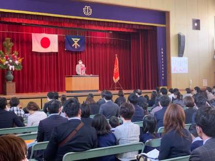 本日、令和4年度の入学式を行いました。66名の新1年生が保護者の方々と一緒に参加しました。天気は快晴、校庭の桜は満開で、入学式にふさわしい日和でした。また、日ごろから地域の安全を見守っていただいている「青色パトロール隊」の方々もお祝いに駆けつけてくださいました。