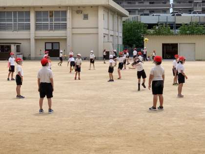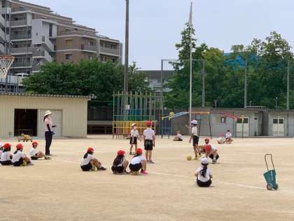五月晴れのさわやかな空のもとで、いきいきとした子どもたちの動きが印象的な体育学習でした。