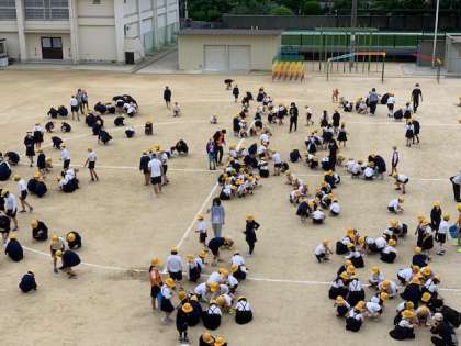 本日の全校朝会のあと、環境委員会の子どもたちが中心となって、すみれ小学校の子どもたち全員で運動場の石ひろいをしました。運動会の練習が運動場でもスタートし、運動場本番に向けて運動場のコンディションを良好に保つために行いました。