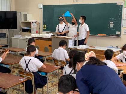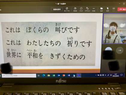 本日の8時35分よりTeamsで折り鶴集会を行いました。これは、すみれ小学校の平和教育として毎年実施しています。今回は6年生の子どもたちが「おりづるの旅」の絵本の朗読を通して、折り鶴を折ることについての説明が行われました。