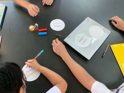 子どもたちはグループごとに、リトマス試験紙をピンセットで丁寧にケースから取り出して、それぞれの水溶液の実験用台紙に貼っていきました。慎重で丁寧な作業ぶりは、さすが6年生です。