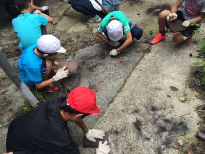 焼き板磨きをしています。