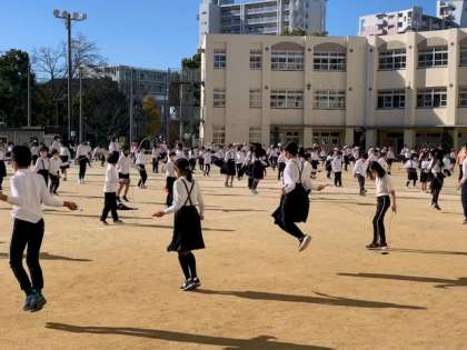 始めたころは寒がっていた子どもたちも、跳び終わったころには心も体も温かくなったようです。みんな笑顔を見せてくれました。