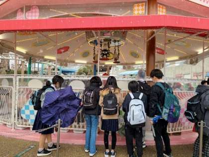 初めは雪の影響で屋内のアトラクションを中心に活動しましたが、午後からはジェットコースターなどの屋外のアトラクションも稼働しました。子どもたちはジェットコースターなどに乗って大喜びでした。