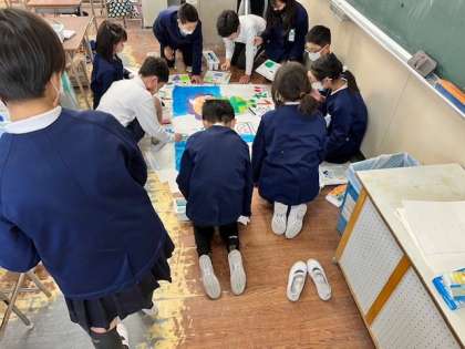 きれいに掃除ができた班は担当の教員からポスターをもらいます。そのポスターを玄関ピロティーに班ごとに貼っていきます。貼り集められたら1枚の大きなポスターが完成します。昨日の委員会活動では、代表委員の子どもたちが一生懸命にポスターの制作に励んでいました。