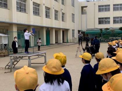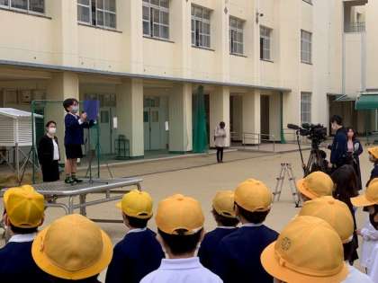 続いて生活指導の担当教員から春休み中の生活の注意点について指導があり、最後は「すみれ児童の歌」を歌って終わりました。