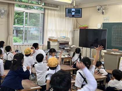 雨天のため、児童集会がテレビ放送で行われました。じゃんけん大会をやりました。1年生も楽しそうでした。
