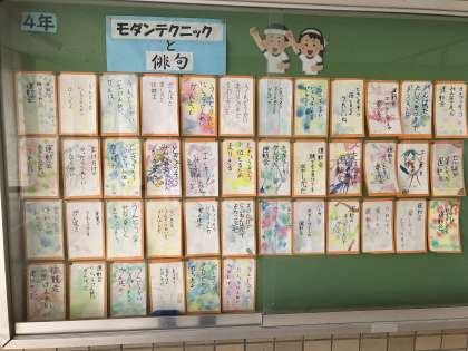 玄関ホールに掲示されています。楽しい俳句でいっぱいです。