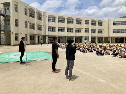 不審者が学校に入って来たとの想定で避難訓練を行いました。不審者は城東警察の方が演じてくださいました。