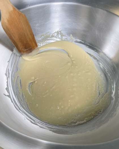 今日の「かぼちゃのクリームシチュー」に入れるホワイトルウは、小麦粉を油でこげ色がつかないようにいためて作っています。