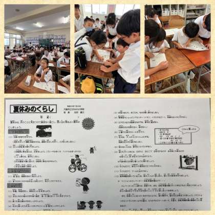本日2時間目に、地区別登校班会が行われ、登校班での集合場所と時間などを確認した後、夏休みの生活についてにも話し合いました。