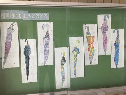 5年生か傘の絵を描きました。早く梅雨が明けてほしいですね。