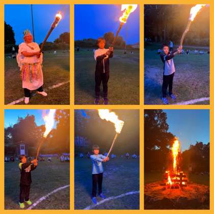 キャンプファイヤー!火の神とトーチ係!大盛り上がり!!!