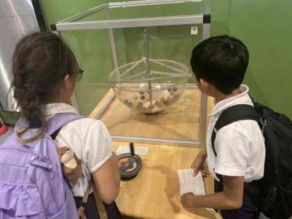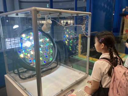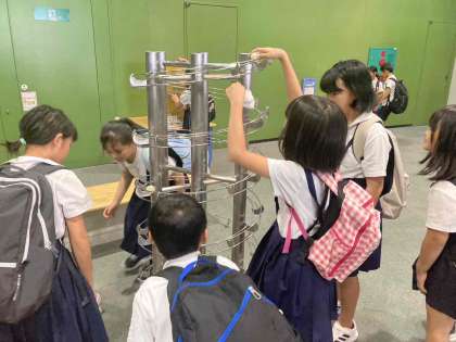 プラネタリウム終わって展示場内でグループ活動をしています。