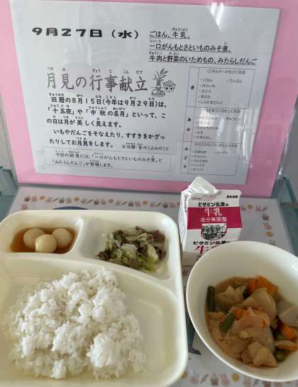 「一口がんもとさといものみそ煮」は、十五夜が「芋名月」と言われることや、十五夜にさといもを供える習慣があることから、さといもを使用した煮ものとなっています。今年は9月29日が十五夜です。