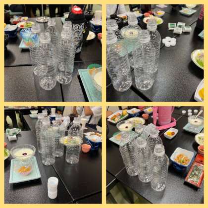 何も指示しなくても、水筒の水を入れ替え、分別して中心に整えている子どもたち。