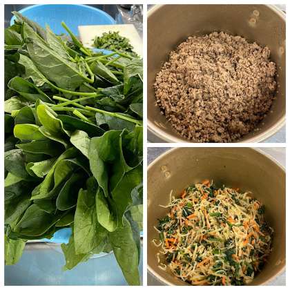 「ビビンバ」は、韓国・朝鮮の混ぜご飯です。牛ひき肉、豚ひき肉を主材に、旬のだいこんとほうれんそう、もやし、にんじんを使用しています。