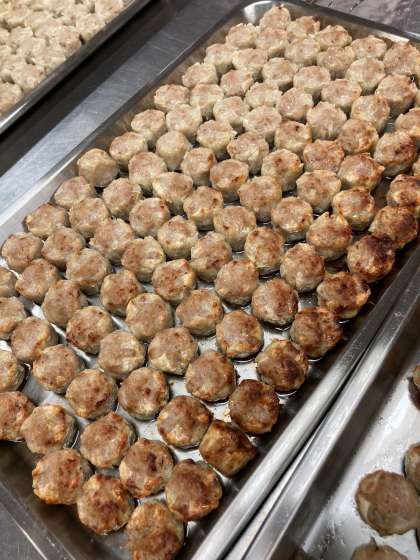 「焼きシューマイ」は、冷凍の肉シューマイをホテルパンにならべて焼きます。