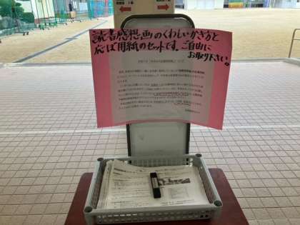 玄関ホールに申し込み書を置いています。自由に持ち帰ってください。