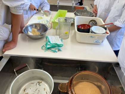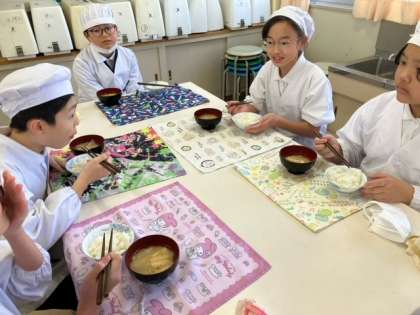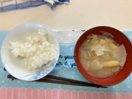 調理実習でごはんを炊いて、大根とうすあげの味噌汁をつくりました。美味しく食べました。