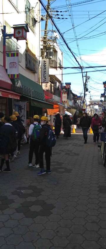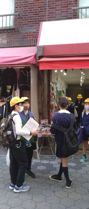 コリアタウンの見学をしています。街の様子を見学したり買い物をしたりして韓国の文化に触れています。
