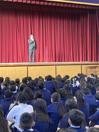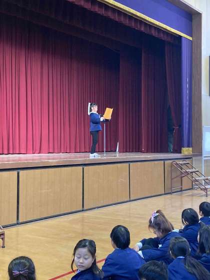 2学期の終業式を行いました。2学期の振り返りを2年生の代表が作文を読みました。