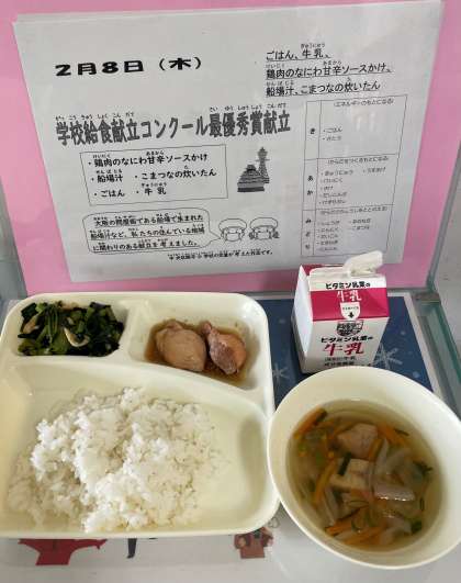 令和4年度学校給食献立コンクール最優秀賞に選ばれた献立です。児童が考えたねらいは、「大阪の問屋街である船場で生まれた船場汁など、私たちの住んでいる地域に関わりのある献立を考えました。」です。