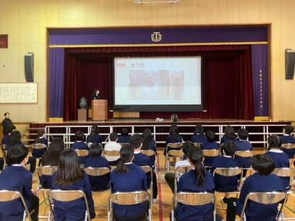 菫中学校の生徒会から中学校の生活について色々と話を聞きました。
