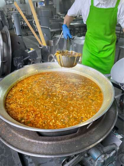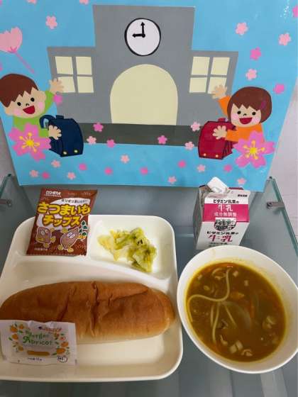 鶏肉とベーコンを主材にしたカレー味のスープパパゲッティは子どもたちに大人気です。