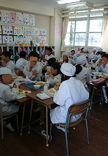 楽しくおしゃべりしているグループ、ちょっと緊張しているグループなど、いつもと少し様子が違う給食の時間でした。