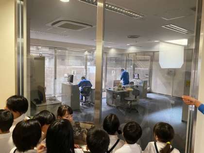 ゴミクレーン車は普段自動運転ですが、今日は特別に運転手さんがクレーンを動かしてくれています!