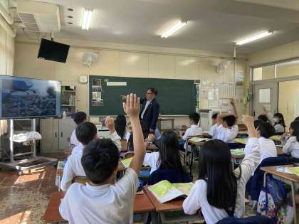校長先生が4年生に「家のごみはどこに行くのか」について授業をしました。社会見学にむけてたくさん課題が見つかりました。
