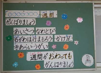 月曜日の朝会で校長先生から、「がんばりましょう」と励ましのお話がありました。